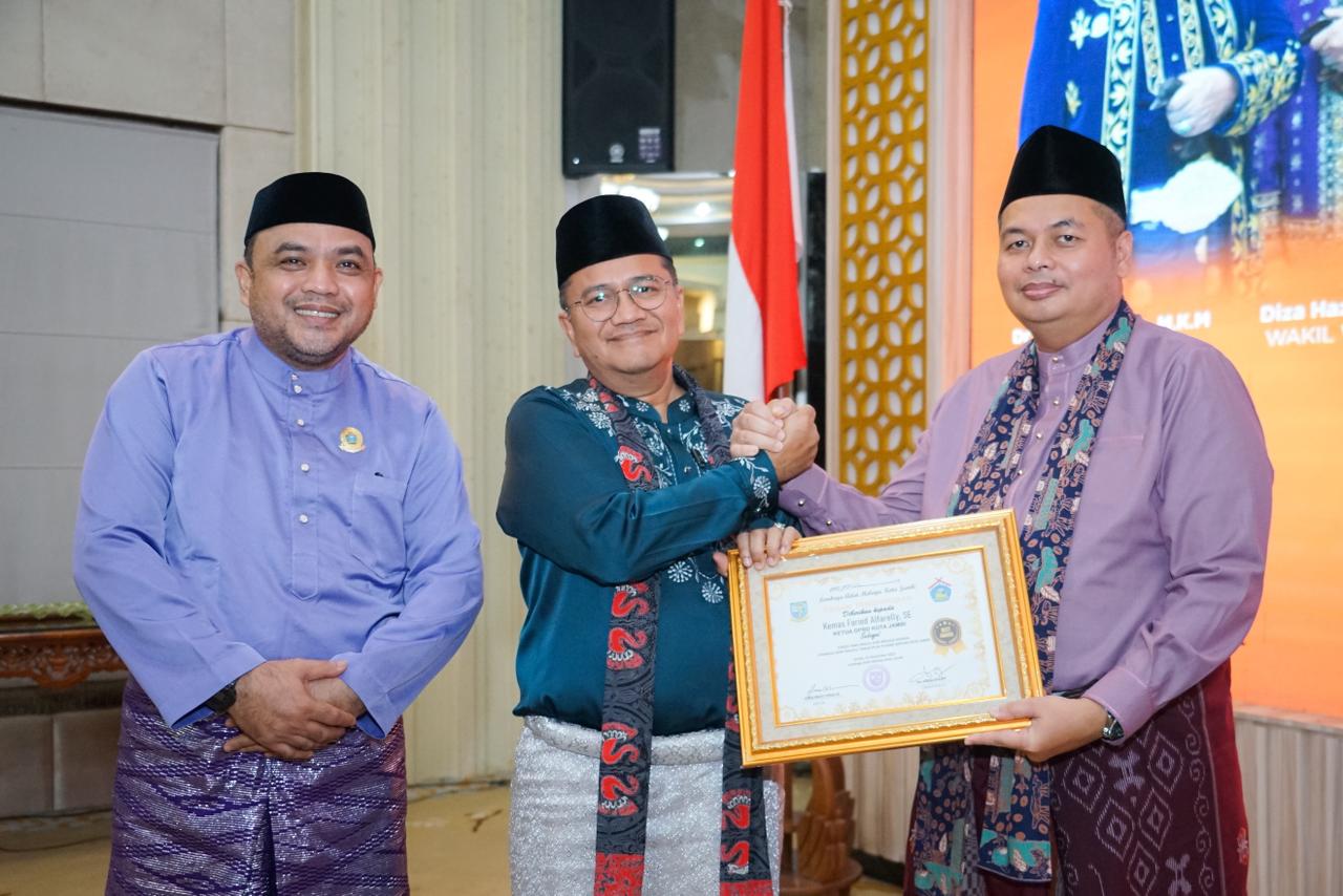Penghargaan bergengsi yang diterima Kemas Faried Alfarelly itu diserahkan Wali Kota Jambi Dr. dr H Maulana.