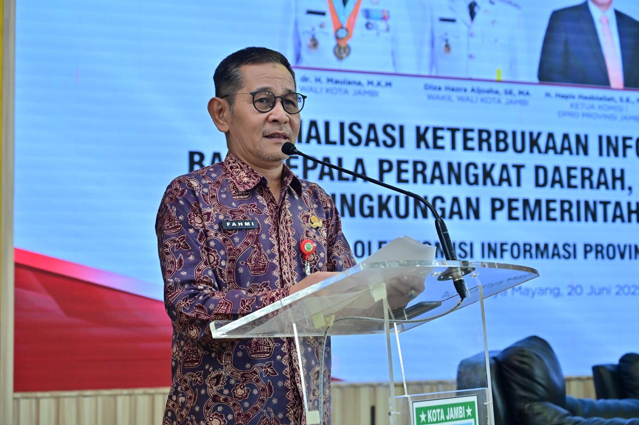 Membacakan sambutan Wali Kota Jambi, Asisten Sekda bidang Pemerintahan dan Kesra Fahmi mengatakan, Undang-Undang Nomor 14 Tahun 2008 tentang Keterbukaan Informasi Publik secara tegas mengamanatkan bahwa setiap badan publik wajib menyelenggarakan urusan keterbukaan informasi kepada masyarakat.
