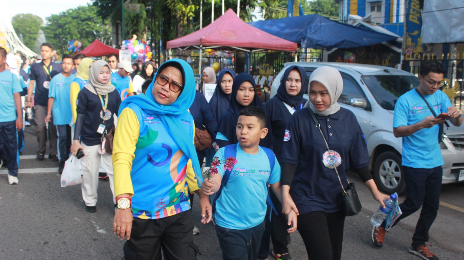 KOTA JAMBI, CERITAJAMBI.COM — Dalam rangka memperingati Hari Disabilitas Internasional, Dinas Sosial Kota Jambi bersama Sentra Alyatama menggelar jalan santai, senam bersama, serta berbagai penampilan kreatif dari anak-anak disabilitas, Minggu pagi. Kegiatan dimulai dari Tugu Keris dan berakhir di kawasan Banjuran Budayo, diikuti ribuan peserta dari SMP, SMA, Sekolah Rakyat, anak disabilitas, hingga masyarakat umum.