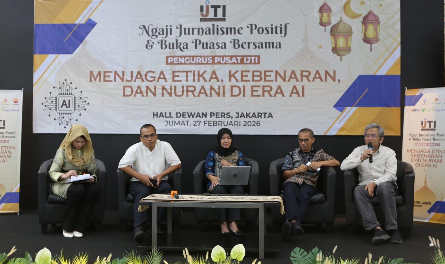 CERITAJAMBI.COM – Ikatan Jurnalis Televisi Indonesia (IJTI) menggelar _Ngaji Jurnalistik_ yang mengambil tema “Menjaga Etika, Kebenaran dan Nurani di Era AI” di Hall Dewan Pers, Jakarta, Jumat (27/2/2026). Kegiatan ini menjadi ruang refleksi bagi jurnalis televisi dalam menghadapi tantangan perkembangan kecerdasan buatan (Artificial Intelligence) yang kian masif di dunia media. “Di tengah disrupsi pers harus survive, itu hukum alam,” kata Komaruddin Hidayat, Ketua Dewan Pers. Menurutnya, yang harus tetap dijaga adalah etika. Etika kaitannya dengan hati dan rasa. “Sebelum bicara kebenaran, etika lebih dulu,” katanya menambahkan.