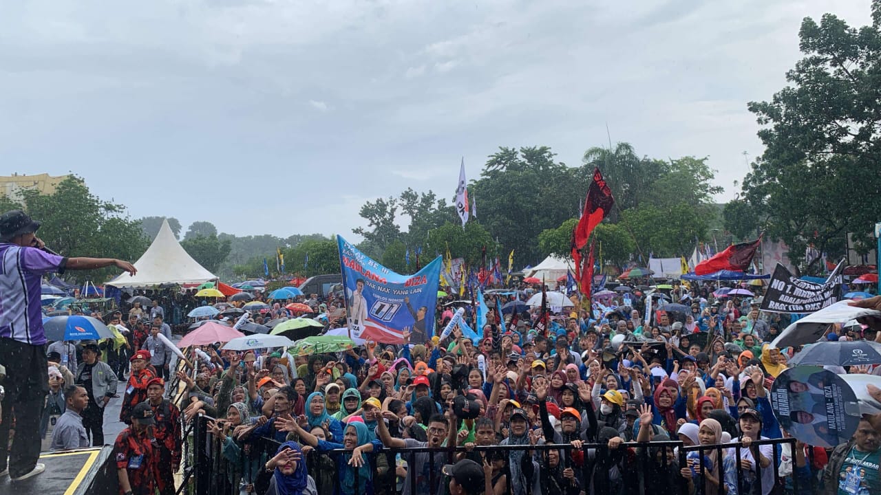 JAMBI,CERITAJAMBI.COM – Kampanye akbar pasangan calon Wakil Wali Kota Jambi, Maulana-Diza, yang digelar pada Jumat, 22 November 2024, di GOR Kota Baru Jambi, berhasil menarik ribuan pendukung meski cuaca hujan deras.