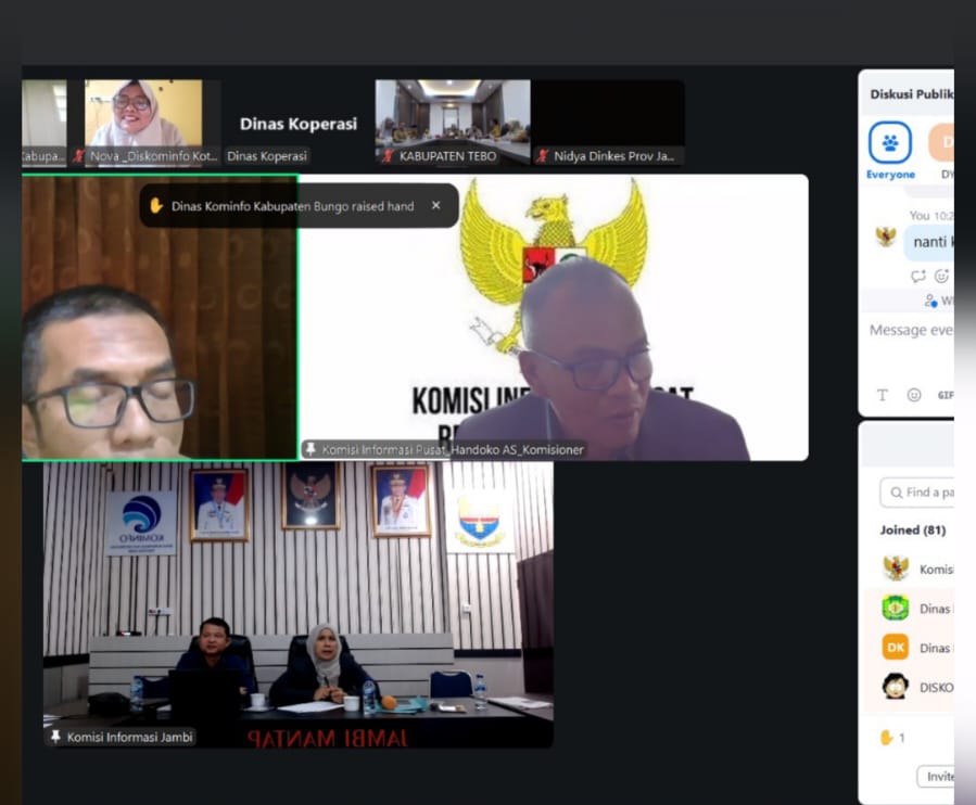 JAMBI,CERITAJAMBI.COM – Hari Anti Korupsi ,Ketua KI,komisi informasi, diskusiKomisi Informasi (KI) Provinsi Jambi pada Selasa pagi, 9 Desember 2025, menggelar Diskusi Publik secara daring melalui Zoom Meeting. Kegiatan ini mengundang PPID Utama Provinsi Jambi, PPID Pelaksana Provinsi Jambi, PPID Utama Kabupaten/Kota, serta PPID Pelaksana Kabupaten/Kota.