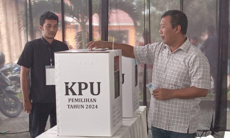 SABAK, CERITAJAMBI.COM –Calon Gubernur (Cagub) Jambi yang juga Bupati Tanjung Jabung Timur Romi Hariyanto, menggunakan hak suaranya dalam Pilkada Serentak 2024 pada Rabu, 27 November 2024.