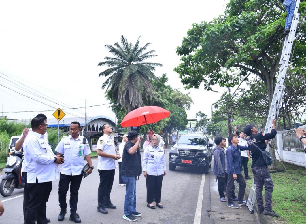 JAMBI,CERITAJAMBI.COM- Guna memastikan penataan jaringan utilitas kabel internet atau fiber optic di kota Jambi berjalan dengan baik, Penjabat (Pj) Wali Kota Jambi Sri Purwaningsih tinjau langsung sejumlah titik yang sedang dilakukan perapihan oleh pihak Asosiasi Penyelenggara Jasa Internet Indonesia (APJII) Jambi, Rabu 15 Januari 2025.
