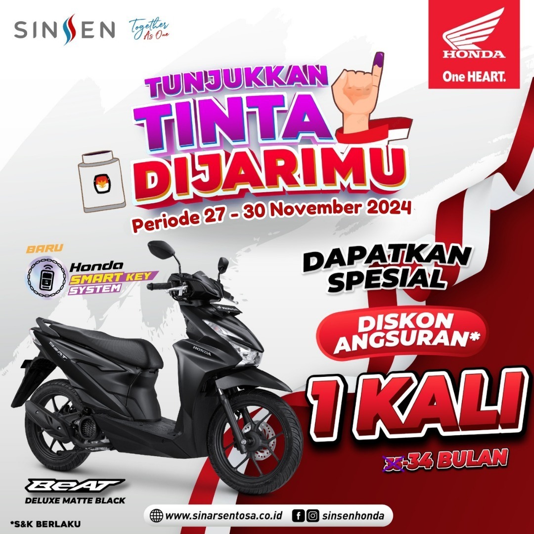 Manager Marketing Sales Sinsen Hendy Tanova menyampaikan bahwa promo ini bertujuan untuk mengapresiasi partisipasi aktif masyarakat dalam Pilkada, serta memberikan kemudahan bagi masyarakat yang ingin memiliki sepeda motor Honda BeAT yang terkenal dengan desain modern dan efisiensi bahan bakar.