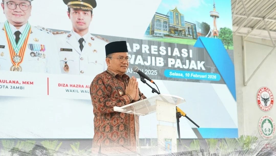 JAMBI,CERITAJAMBI.COM – Wali Kota Jambi, dr. Maulana, menghadiri kegiatan Apresiasi Wajib Pajak Kota Jambi Tahun 2025 yang digelar pada Selasa (10/2/2026) di Taman Banjuran Budayo, Jalan Agus Salim, Kota Jambi.
